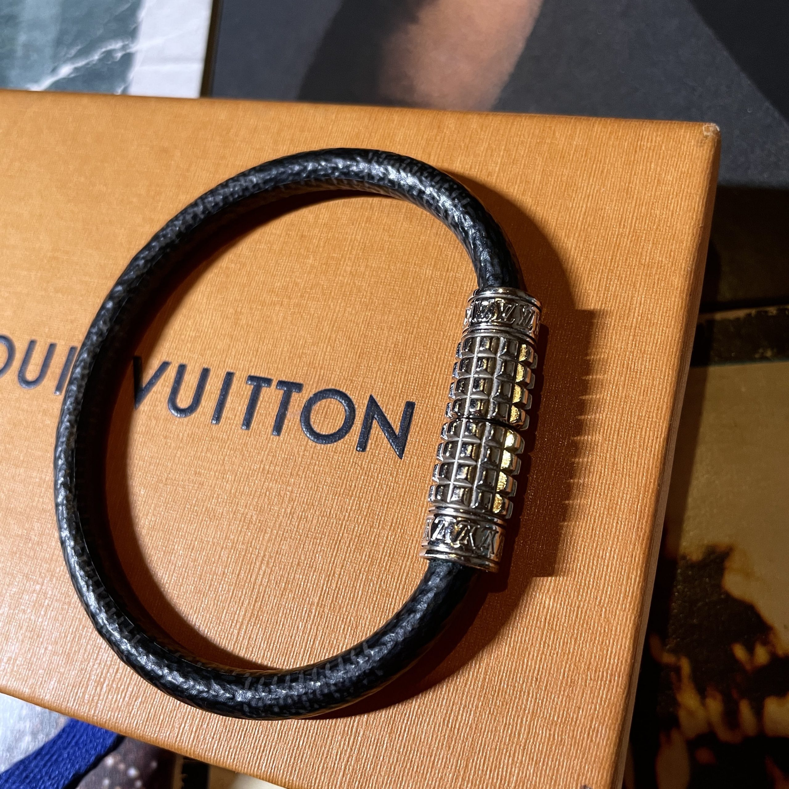 Any LV bracelet is an easy way to add accessories to your fit all year ’round and this piece featuring Louis Vuitton’s iconic damier pattern in a graphite colorway is no exception.